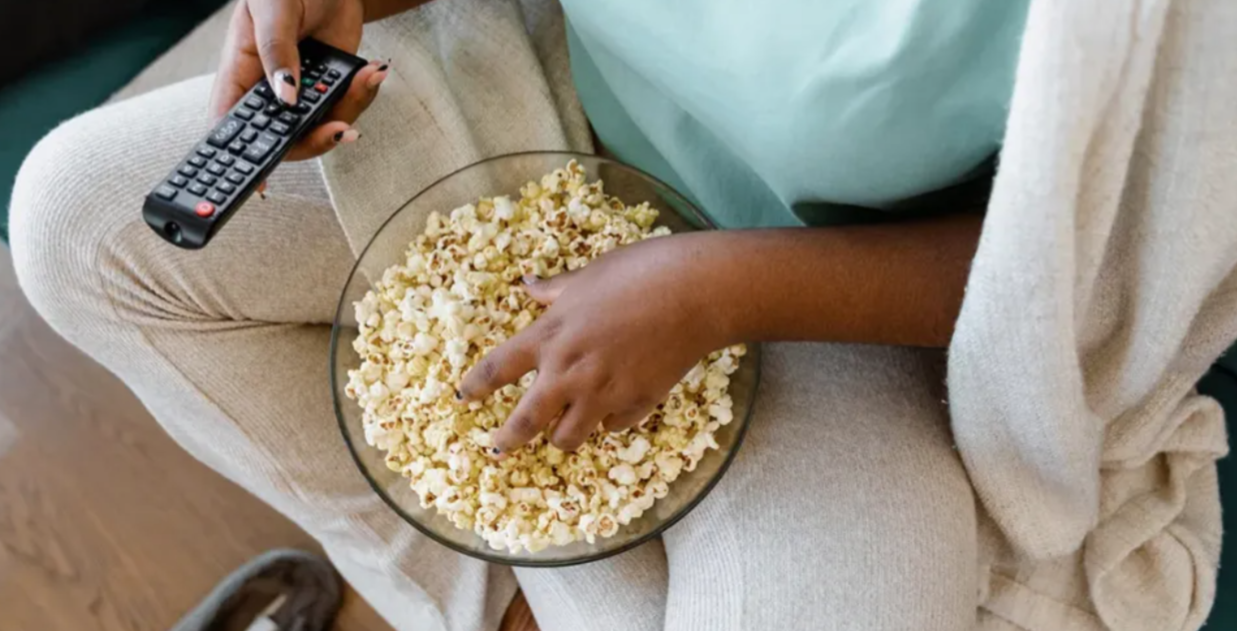 With snacks and TV